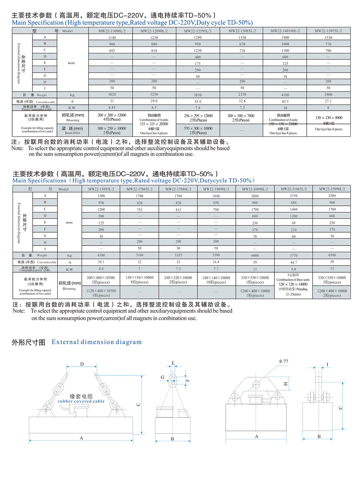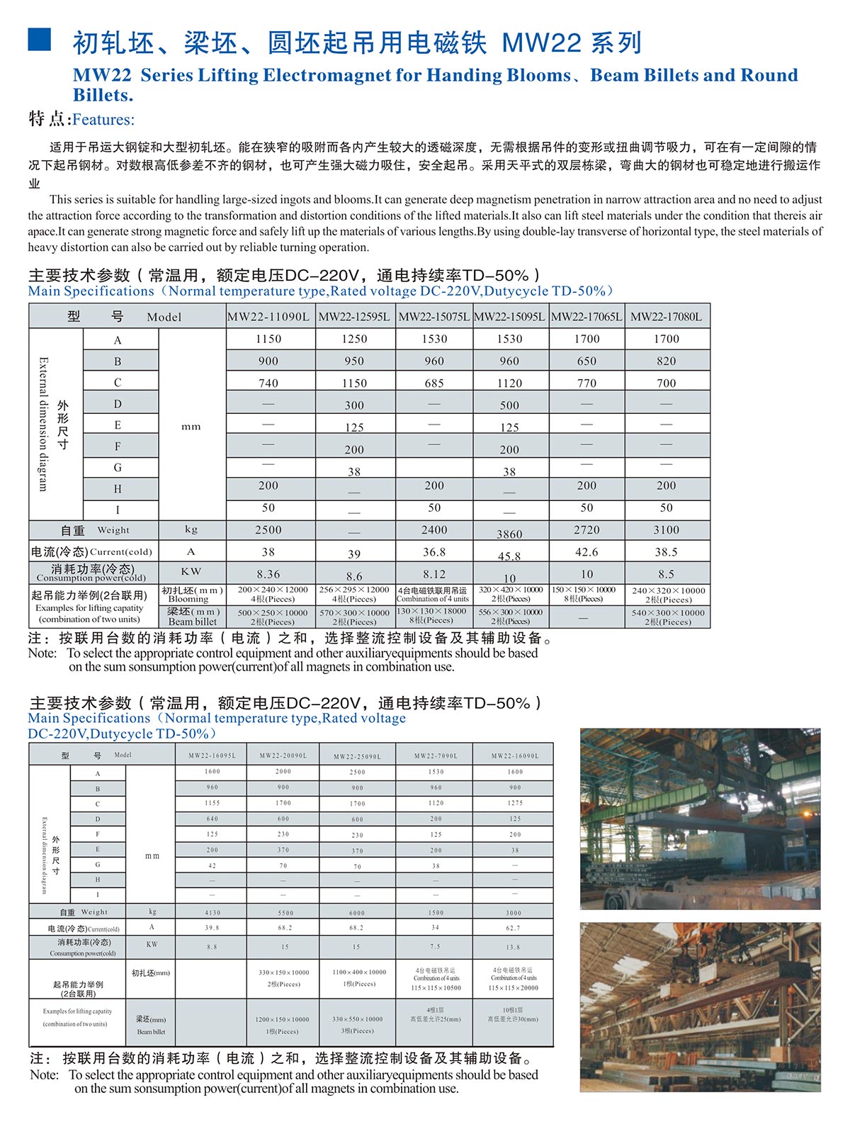 初軋坯、梁坯、圓坯起吊用電磁鐵MW22系列