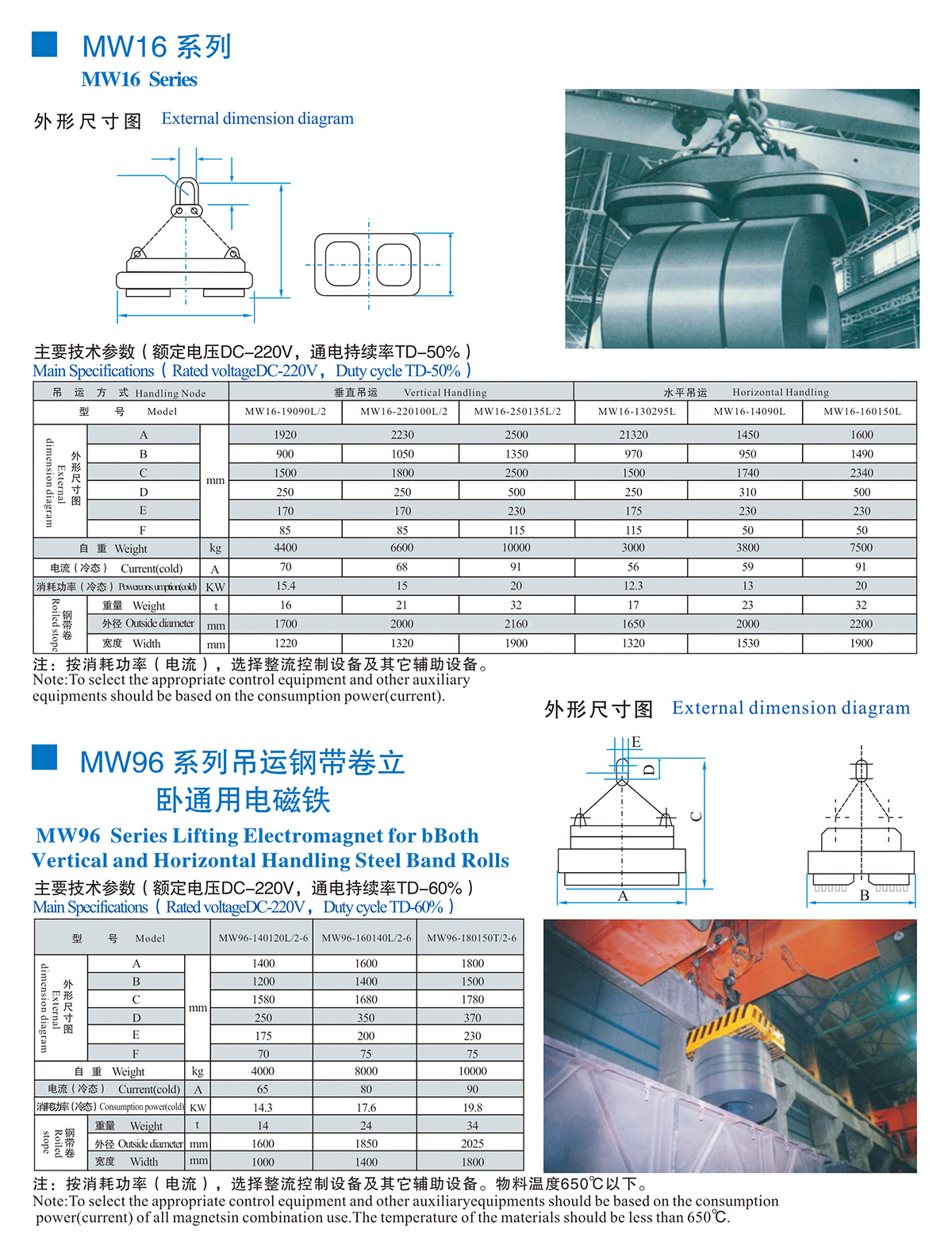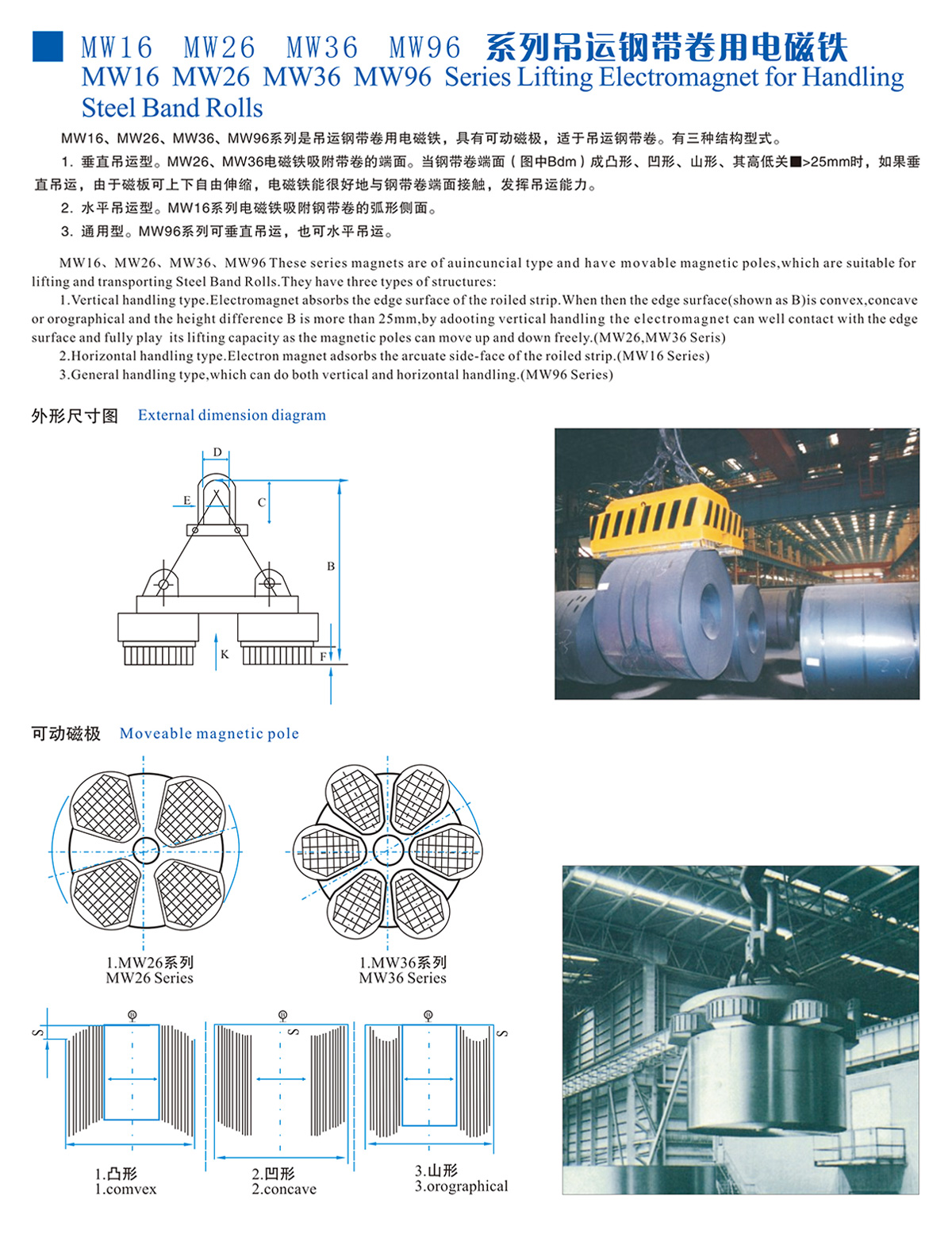 MW16、MW26、MW36、MW96系列吊運鋼帶卷用電磁鐵